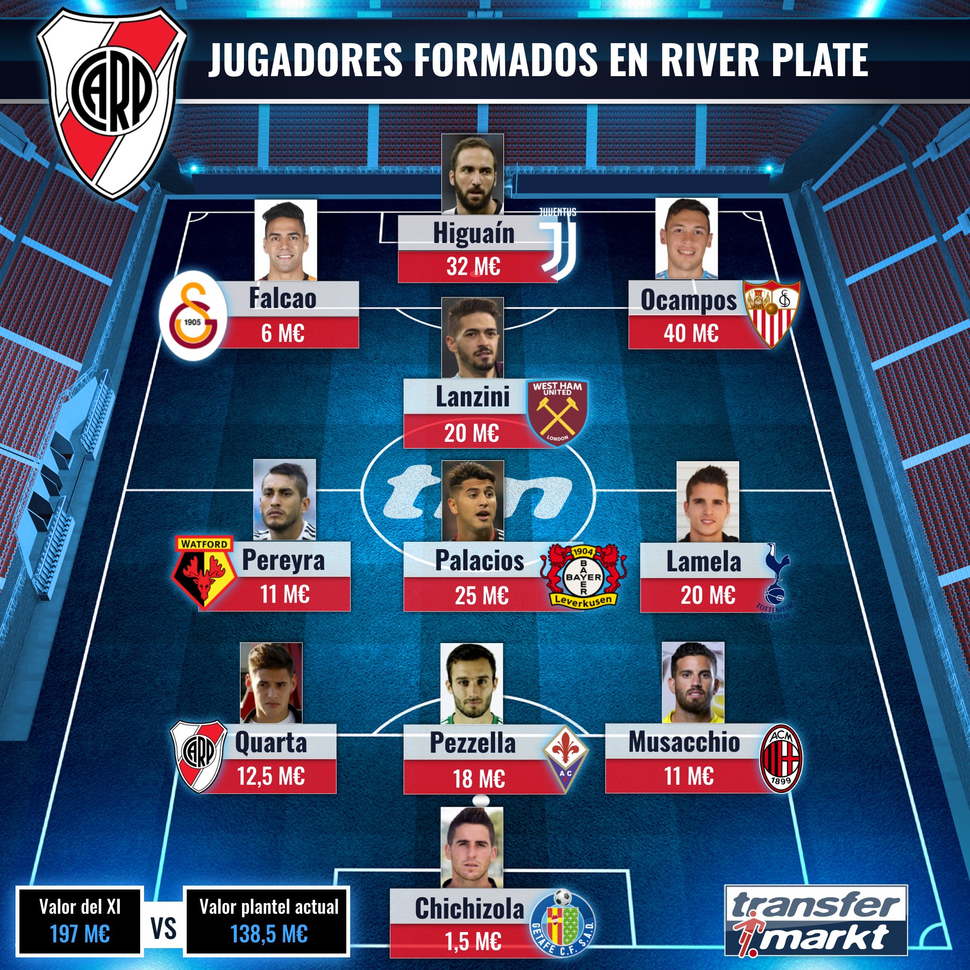 Transfermarkt Es On Twitter Este Es El Xi Mas Valioso De Los Futbolistas Formados En Riverplate Argentina Todos Los Jugadores De River Https T Co Xycgq2ozpi Https T Co 3nqbo7iwfr